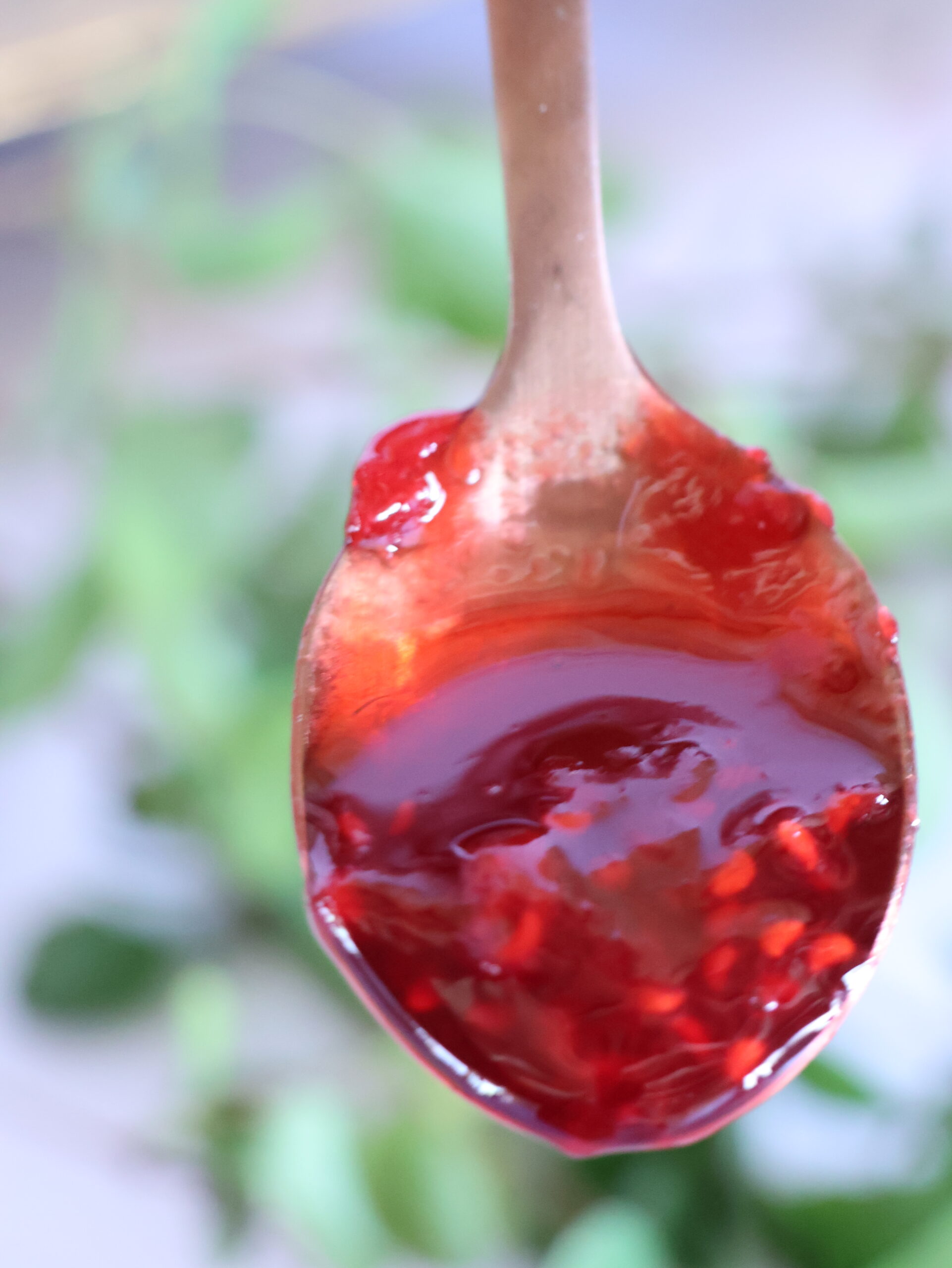 Ingrédients : framboise (65 %), sucre, jus de citron (2 %), agar-agar.