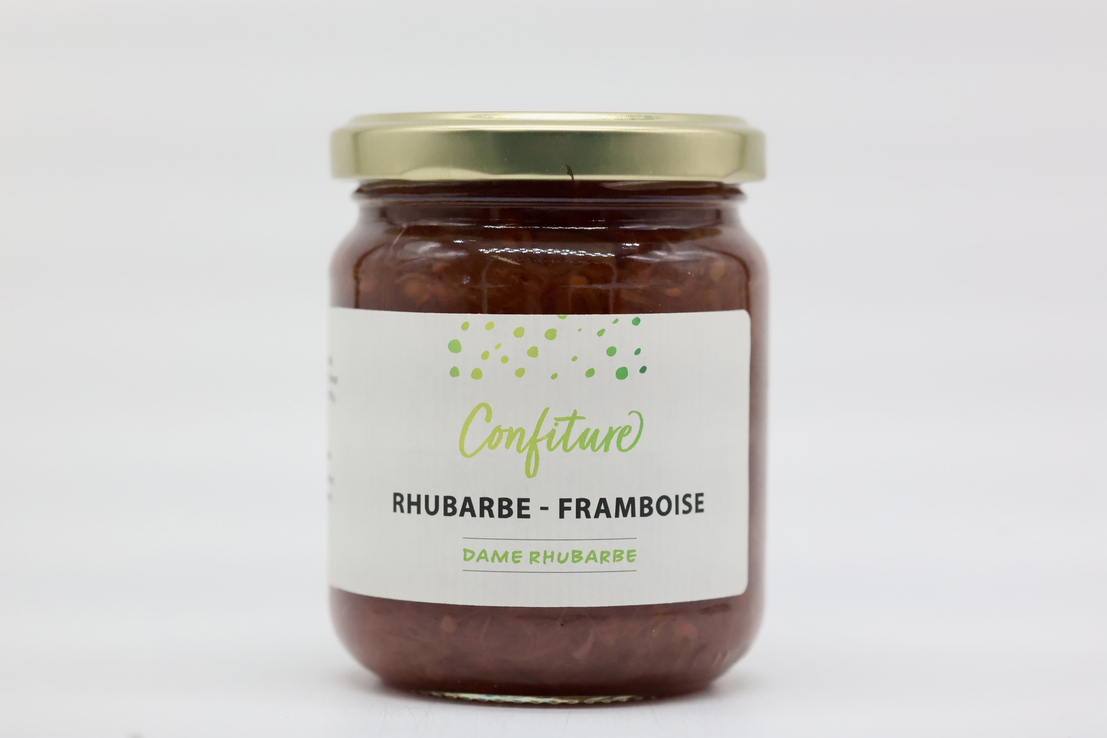 Ingrédients : rhubarbe (55 %), framboise(10 %), sucre.